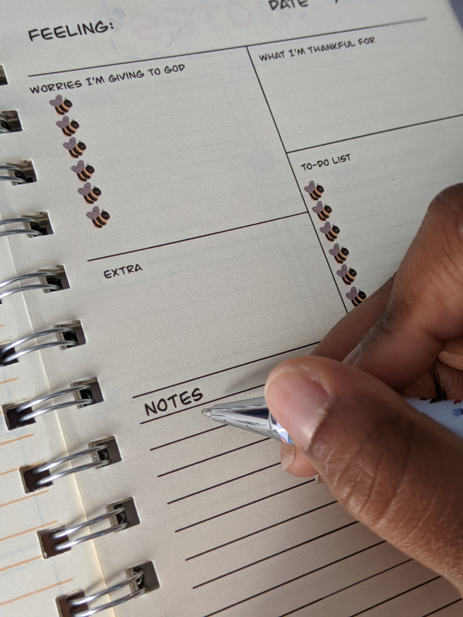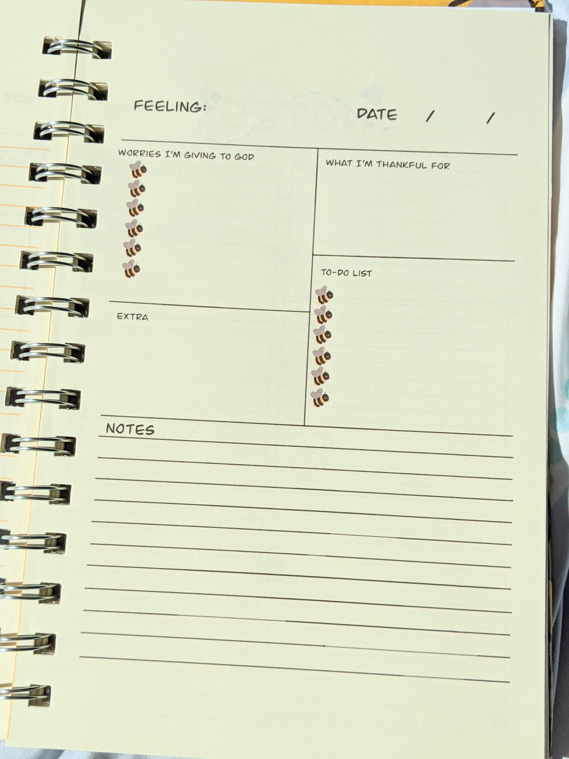 Stay organized and inspired with the Bee Not Forgetful Journal — where faith and focus meet cozy creativity. 🐝 This sturdy spiral-bound hardcover journal features daily spreads to help you plan your days with intention, lined notes pages for your thoughts and prayers, and dedicated brain dump sections for when inspiration strikes. Perfect for journaling, to-do lists, or devotional reflections. 💛